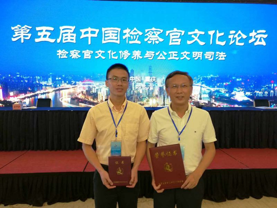 党组成员、政治部主任吴金喜,走上领奖台,从中国检察官文联领导手中接过了第五届中国检察官文化论坛论文征集“组织工作先进单位”的奖状。莆田市城厢区检察院副检察长沈威也上台领奖。